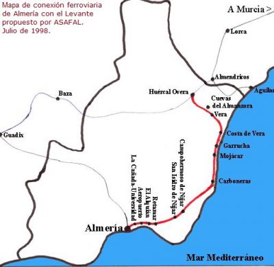 El 18 de Julio de 1998, esta asociación aprobó por unanimidad esta propuesta de recorrido para la conexión ferroviaria de Almería con el Levante. Fue presentada a la opinión pública almeriense en rueda de prensa celebrada en la capital almeriense el día 31 del mismo mes. Dado que la gran…