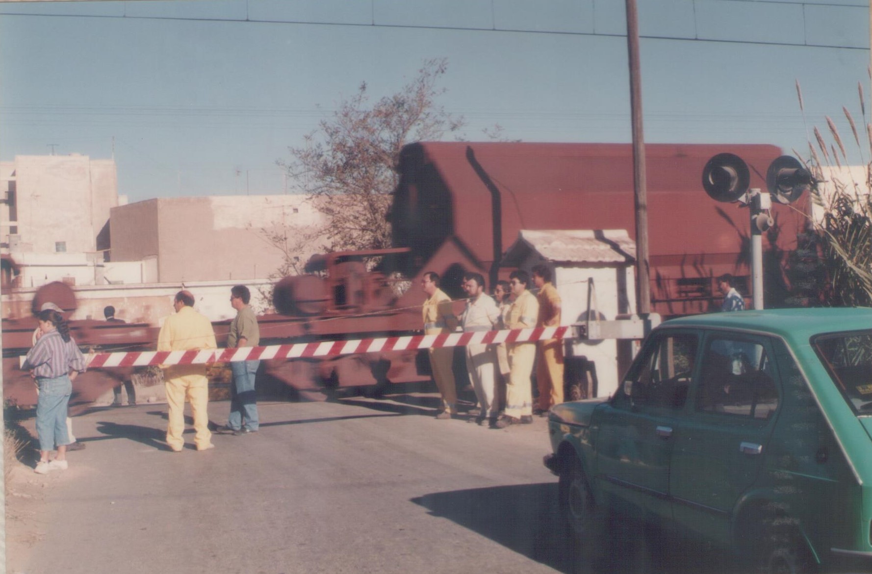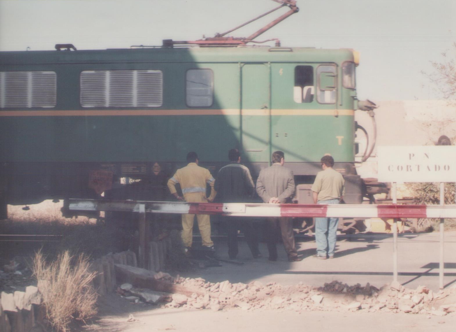 La barrera se acciona por última vez antes de la clausura del PN de Gachas Colorás. 1990. Fondo ASAFAL.