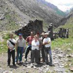 No estábamos solos, sino todo lo contrario, es una ruta muy conocida y nos cruzamos con senderistas de todo tipo, aunque estamos seguros de que nosotros íbamos mejor pertrechados que nadie. Esperamos a llegar a un recodo estratégico de la vereda para echar un trago de vino de la Contraviesa de la bota y saborear un excelente jamón, muy apropiado para las alturas y, sobre todo, si lo haces mirando a tres gigantes nevados: el Mulhacén, Veleta y Alcazaba. Recuperadas las fuerzas físicas y espirituales, seguimos avanzando y, a unos 10 kms. aparecieron los restos de la explotación minera y las bocaminas, hoy refugio de vacas. Unos carteles te informan del pasado y, echando un vistazo alrededor tienes que pensar en las condiciones de trabajo de las personas que operaban aquí, sufriendo las inclemencias del tiempo, muy variables en la media montaña, y las de su propia actividad. De haberse prolongado el tranvía para el transporte de minerales, esa vida hubiera sido, sin duda, más llevadera.