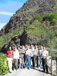 Pero el objetivo de los aventureros de ASAFAL era otro: recorrer la nonata prolongación del tranvía hasta las Minas de la Estrella. Y con esa intención llegamos en coche hasta el Barranco de San Juan, habiendo encargado previamente la comida en un excelente merendero frente a la antigua estación del Charcón. Desde el final de la línea, lugar desde el que debía haber partido un teleférico hasta el Collado de los Peñones de San Francisco (la zona próxima a lo que hoy conocemos como la estación de esquí de Sierra Nevada), se inicia una vereda en la margen contraria que daba servicio a la explotación minera de calcopirita en las llamadas Minas de la Estrella. Esta senda permitía el paso de animales que transportaban el mineral hasta la estación del tranvía después de un duro y peligroso itinerario, lo que planteó la prolongación del trazado tranviario hasta las mismas minas, algo que no se llevó a cabo y que, visto el terreno tan abrupto, era una empresa dificil.