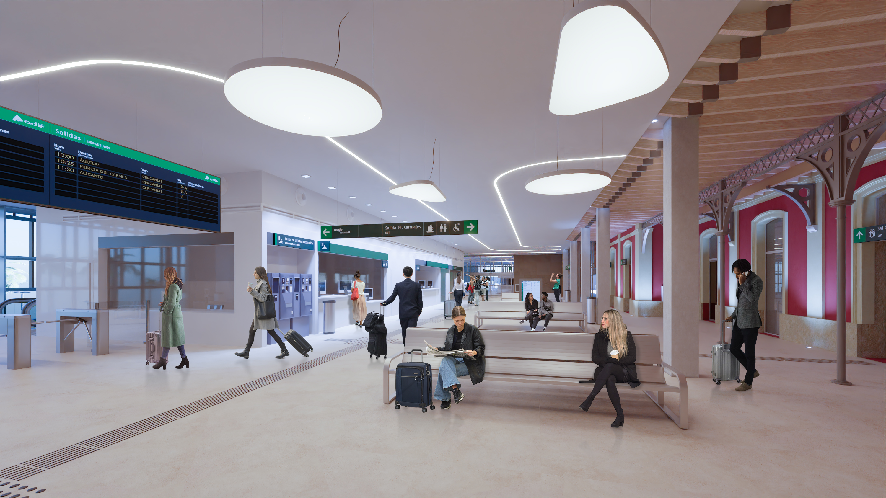 Con una superficie de 2.314 m2, seis veces más que la actual, la estación responderá al incremento de viajeros y será el resultado de aunar y poner en valor el edificio histórico, referente de la ciudad y Patrimonio Cultural de la Región, con una nueva área ampliada.