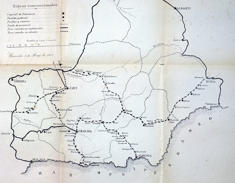 El contexto de desarrollo de las líneas ferroviarias en la Andalucía Oriental no fue distinto a esta realidad y la llegada del ferrocarril generó no pocas tensiones y diferencias de criterio entre los diferentes territorios de las provincias de Granada, Jaén y Almería, lo que unido al desinterés inversor local y la presencia de numerosos yacimientos mineros condicionaron el resultado final.