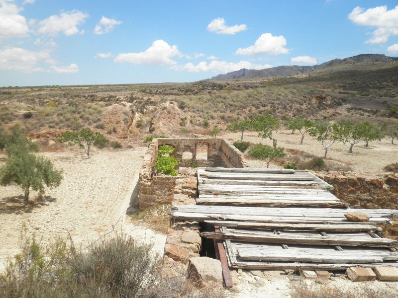 Dejando atrás este abrupto terreno, finalmente apareció un camino que facilitó el descenso y bordeaba la mina “Gavilán”, apreciándose una de las bocas que está tapiada para prevenir accidentes. Hasta este punto también hubo un plano inclinado, con lo que la sucesión de estos ingenios desde la cumbre fue lo que permitió evacuar los minerales hasta el cable del Colativí y, tras 18 km. suspendidos en el aire, embarcarse en los buques en la actual playa de El Toyo. Precisamente este costoso sistema de transporte y el bajo rendimiento del mineral extraído fue lo que motivó el final apresurado de la explotación por la Sociedad Minera Cordobesa y el traspasó de sus pertenencias a una sociedad vallisoletana que cambió la ruta de salida de los minerales hacia el cercano ferrocarril de Lucainena de las Torres a Aguamarga. Al parecer, alrededor del año 1920 se montó el material del cable del Colativí para realizar el trayecto hasta la zona de Colmenillas, en Lucainena de las Torres y, prueba de ello, son los restos de las tolvas de almacenamiento y vertederas en la estación de este cable, así como el edificio de la maquinaria y la gran trinchera de salida del cable aéreo. La duda que se suscita es si finalmente llegó a ponerse en servicio o solamente quedó a medio hacer y con las principales construcciones civiles terminadas. Labor para investigar en los archivos.