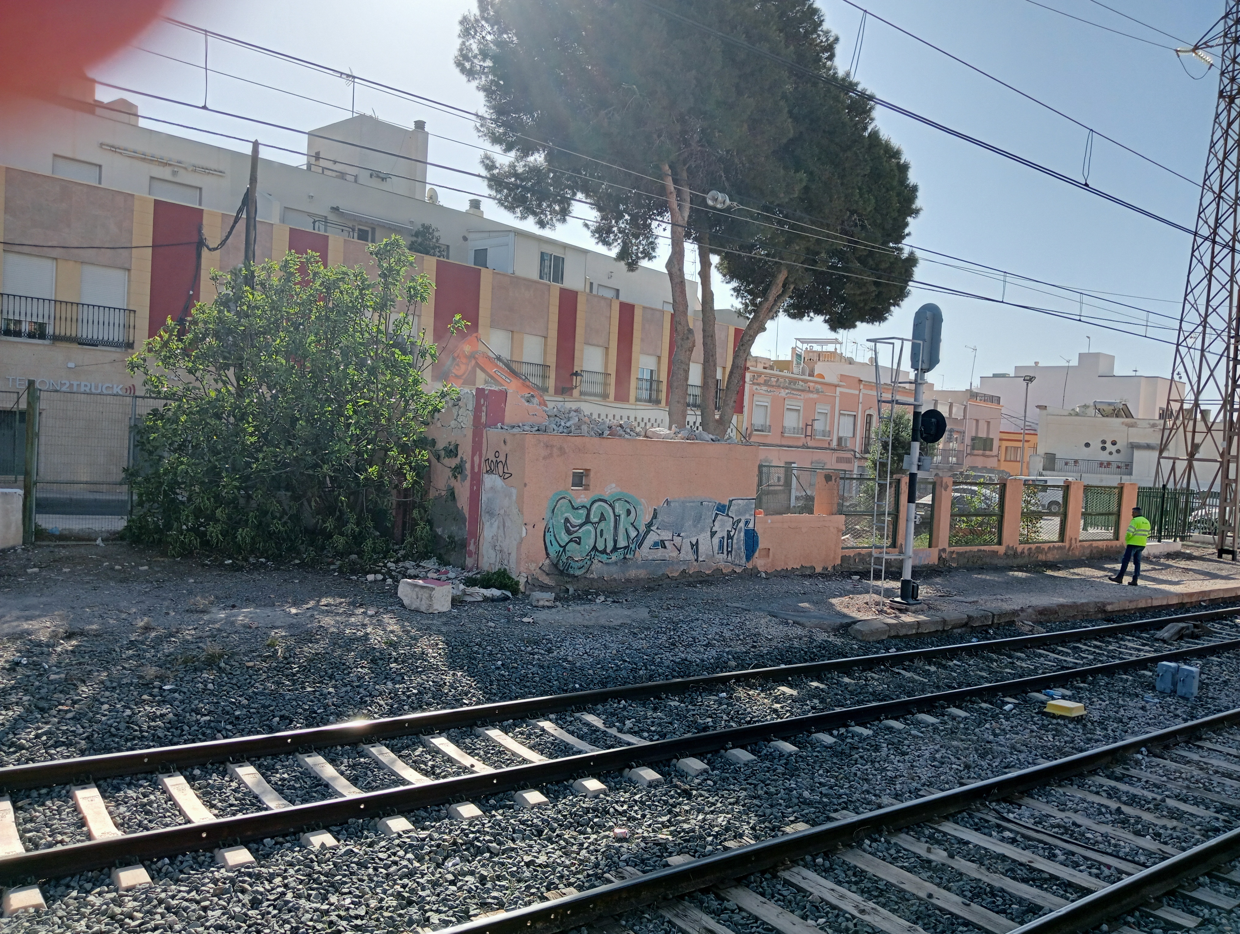 Esta vez le ha tocado a un pequeño edificio de la estación de Huércal-Viator que nos duele especialmente a los que formamos ASAFAL. Nuestra antigua sede social, la denominada “casilla del capataz” ha sido derribada por el Administrador de Infraestructuras Ferroviarias (ADIF). Un mensaje del Ayuntamiento de Huércal de Almería anunciaba el corte de la calle para efectuar los trabajos de demolición y eso fue lo que nos hizo sospechar que ya no había vuelta atrás. Ya lo intentó la vieja RENFE, cuando se sustituyó el peligroso paso a nivel por el actual elevado, pero las autoridades municipales de la época impidieron su desaparición. Poco le ha importado a la actual corporación que desaparezca de su localidad un elemento patrimonial tan ligado al territorio y que podría haber sido acondicionado para otros usos.